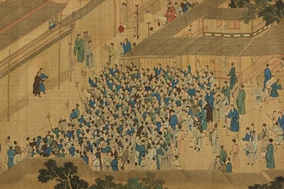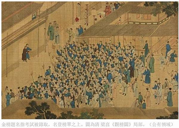 金榜題名指考試被錄取,名登榜單之上。圖為清 梁亯《觀榜圖》局部。(公有領域)