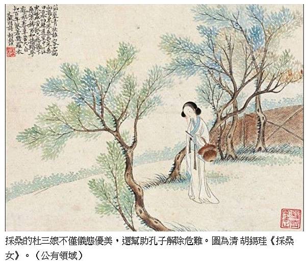 採桑的杜三娘不僅儀態優美,還幫助孔子解除危難。圖為清 胡錫珪《採桑女》。(公有領域)