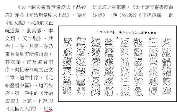 《度人經》為重要道教經典,全名《太上洞玄靈寶元始無量度人上品妙經》,又稱《元始無量度人上品妙經》(以下簡稱《度人經》),撰人不詳,收錄於《正統道藏》,為《正統道藏》中所收錄首部經典,此經共61卷。自陳國符(1914-2000)的研究以來,已知其第1卷為公元4世紀末出現,由東晉葛巢甫所傳10部35卷靈寶經之一,屬最初古靈寶經的一部分。《度人經》第1卷在陸修靜(406-477)所整理《靈寶經目》中屬第15號作品,成書年代為437年前已經出世的早期靈寶經。在此經中說明,《度人經》為太上大道君傳授於元始天尊,傳教於世。《度人經》很早便取得在靈寶經中的突出地位。在5世紀末即有注疏的出現,至唐代所有的注疏者都只致力於1卷本的《度人經》的解釋,並且奠定了道藏第1號經典的地位。