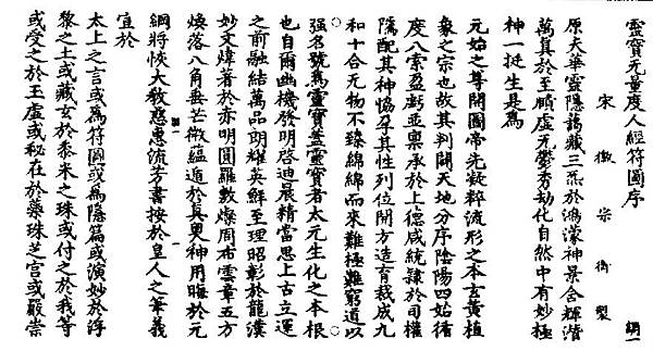 元洞玉曆,龍漢延康,渺渺億劫,渾沌之中,上無複色,下無複淵,風澤洞虛,金剛乘天,天上天下,無幽無冥,無形無影,無極無窮,溟涬大梵,寥廓無光,赤明開圖,運度自然,元始安鎮,敷落五篇,赤書玉字,八威龍文,保制劫運,使天長存,梵氣彌羅,萬梵開張,元綱流演,三十二天,輪轉無色,周回十方,旋鬥曆箕,回度五常,三十五分,總氣上元,八景冥合,氣入玄玄,玄中太皇,上帝高真,泛景太霞,嘯詠洞章,金真朗鬱,流響雲營,玉音攝氣,靈風聚煙,紫虛鬱秀,輔翼萬仙,千和萬合,自然成真。真中有神,長生大君,無英公子,白元尊神,太一司命,桃康合延,執符把籙,保命生根,上游上清,出入華房,八冥之內,細微之中,下鎮人身,泥丸絳宮,中理五氣,混合百神,十轉回靈,萬氣齊仙,仙道貴生,無量度人。