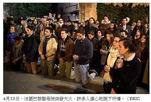 4月15日,法國巴黎聖母院突發大火,許多人傷心地跪下祈禱。