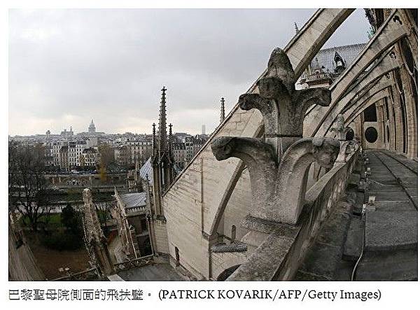 巴黎聖母院側面的飛扶壁。 (PATRICK KOVARIK/AFP/Getty Images)