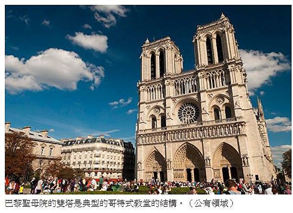 巴黎聖母院的雙塔是典型的哥特式教堂的結構。(公有領域)