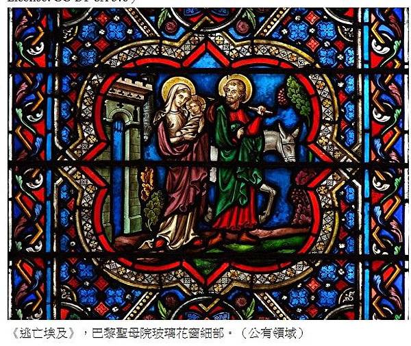 《逃亡埃及》,巴黎聖母院玻璃花窗細部。(公有領域)