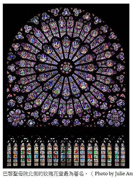 巴黎聖母院北側的玫瑰花窗最為著名。( Photo by Julie Anne Workman. License: CC-BY-SA 3.0)