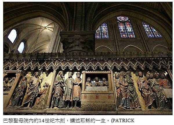 巴黎聖母院內的14世紀木刻,講述耶穌的一生。(PATRICK KOVARIK/AFP/Getty Images)