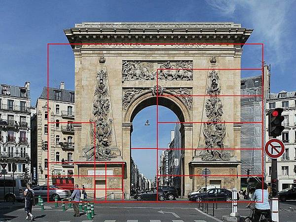 1672年,建築師隆代爾(Blondel)設計聖丹尼門時,思考如何在雜亂的環境中來創造凱旋莊嚴的氛圍。他首先確定這座凱旋門的基本量體後,便以「3」為單位,分割出拱門的尺度,再以其分子或分母為模距,以此為基礎,處理跟立面比例有密切關係的各項尺寸,企圖找出設計基準的秩序準則。