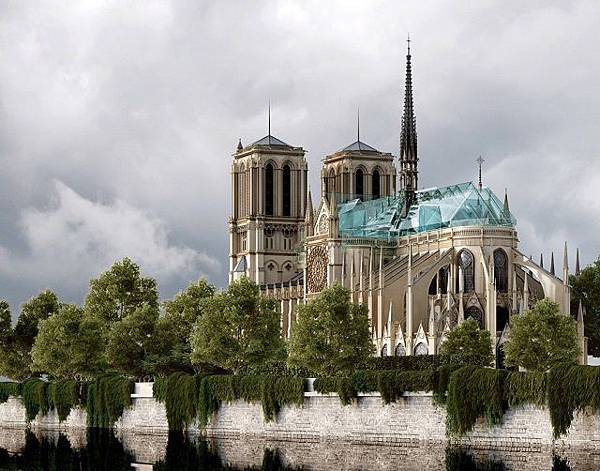 採用新元素重建巴黎聖母院的想像圖。圖片來源:designyoutrust.com