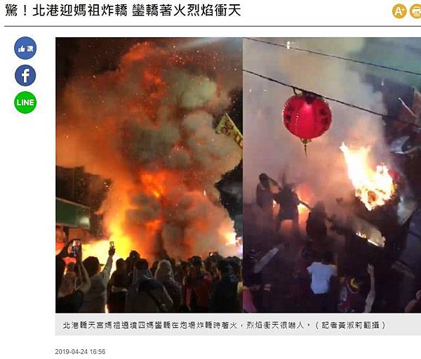 分享驚!北港迎媽祖炸轎 鑾轎著火烈焰衝天到Facebook 分享驚!北港迎媽祖炸轎 鑾轎著火烈焰衝天到Line
