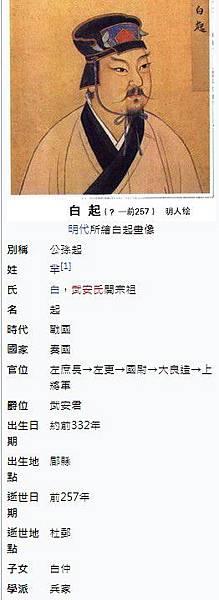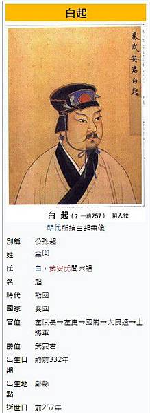 白起 - 維基百科,自由的百科全書 http://tinyurl.com/y6sdo2dj