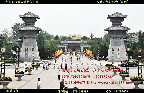 石闕經過歷史的演變,現在依舊盛行,在現在的寺院、道觀、景區、廣場、公園等地方我們常常可以看到石雕漢闕的擺放。
