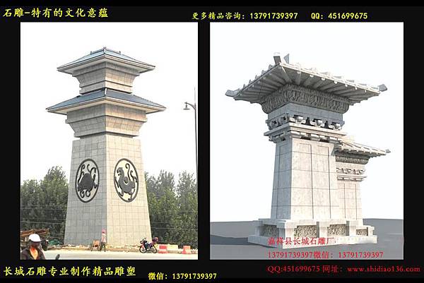 漢闕是中國現存的地上古修建中,最早的修建什物。它也和華表相同,是中國古修建的一種特別的類型,雖然是修建小品,但發展變化很大,也可謂蔚為大觀。最精巧的石雕漢闕“闕,門觀也。”《釋名》則這麼解說,“闕,闕也,在門兩旁,中心闕然為道也;觀,觀也,於上張望也。”崔豹《古今注》說,“闕,觀也,古者每門樹兩觀於前,所以標表宮門也,其上可居,登之可遠觀。”如現在最熱銷的漢闕式牌坊,可見石闕對石雕牌坊的樣式影響頗深。