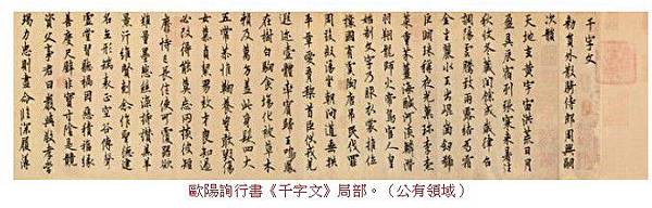 歐陽詢行書《千字文》局部。(公有領域)