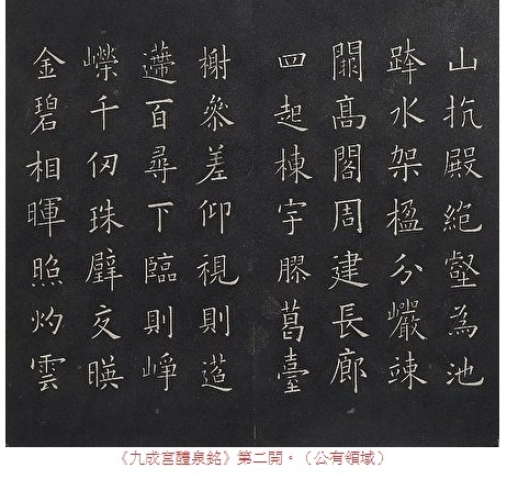 《九成宮醴泉銘》第二開。(公有領域)