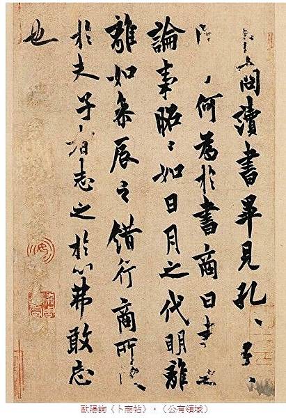 歐陽詢於唐貞觀(西元626~649年)年間,以八十多歲的高齡逝世,身後傳世的墨蹟有《卜商帖》、《張翰帖》等,碑刻有《九成宮醴泉銘》、《皇甫誕碑》等,都堪稱書法藝術的瑰寶。