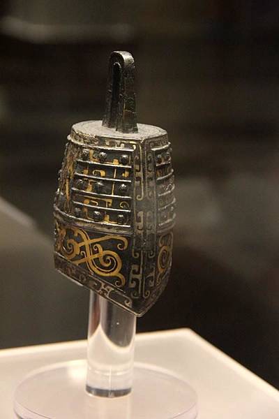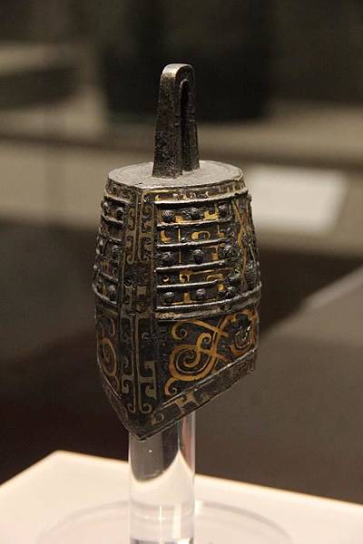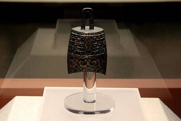 這把青銅鐘體積不大,造型很常見,不過通體金色的紋飾,讓它立刻華貴典雅了許多。樂府」這兩個銘文,更是讓它身價倍增。但按照提示牌的提示,我在鍾鈕上仔細的尋找了許久,卻沒有看到「樂府」這兩個字。