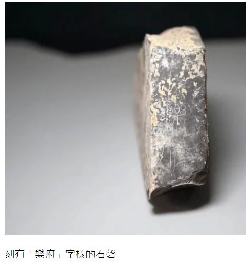好在這一遺憾在去年有所彌補,在秦咸陽宮遺址內,陝西的考古工作者發現了一件石磬,經過清理後醒目的「樂府」二字呈現在石磬之上。如果說那把錯金銀鍾證明了樂府在秦代就已經存在了,那麼這件石磬則為尋找秦代樂府所在,提供了非常有價值的線索。