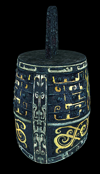 此展品為秦代的青銅器。 鼻形紐,有錯金蟠螭紋、流雲紋、錯銀雲紋、陽線雲雷紋飾于鐘上。 紐部刻有「樂府」二字,證明秦代已經設有樂府機構。 現收藏于秦始皇帝陵博物院