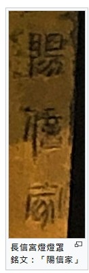 此外學者趙化成等認為依照漢代「陽信家」青銅器的出土記錄,包括長信宮燈在內的大量「陽信家」銅器均屬於漢武帝之姊平陽長公主(陽信長公主)[2],故長信宮燈最早屬於哪位皇室成員尚沒有確實定論。