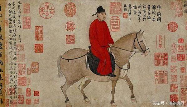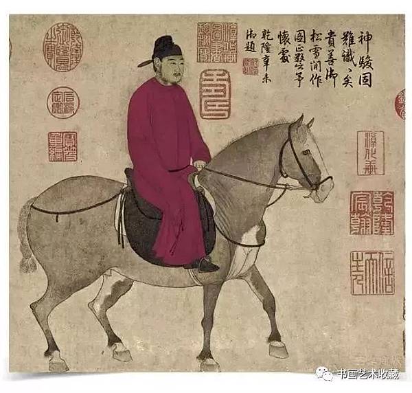 圖中那穿紅袍的顯貴,應是天子的象徵,而駿馬則是趙孟頫的自喻,表達了他願為良主效勞的儒家濟世思想。 雖然趙孟頫在題識中沒有將這層意思說出來,但于題跋中「世有識者,許渠具眼」一句卻含有雙關之意。 400多年後,當清乾隆帝觀閱此圖時,題詩雲:「神駿固難識,識矣貴善禦;松雪閑作圖,正警予懷處」,將趙孟頫欲說還休的意思和盤托出。 [5]