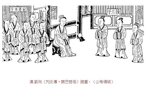 漢 劉向《列女傳‧魏芒慈母》插圖。(公有領域)