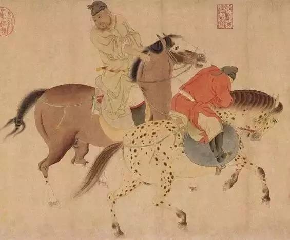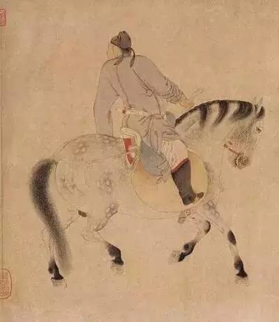 唐玄宗有兩匹心愛的「胡種馬」,叫做「玉花驄」和「照夜白」。 此騎為「照夜白」。