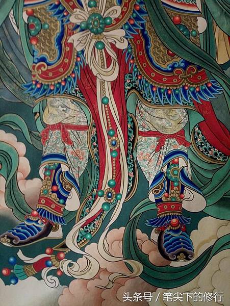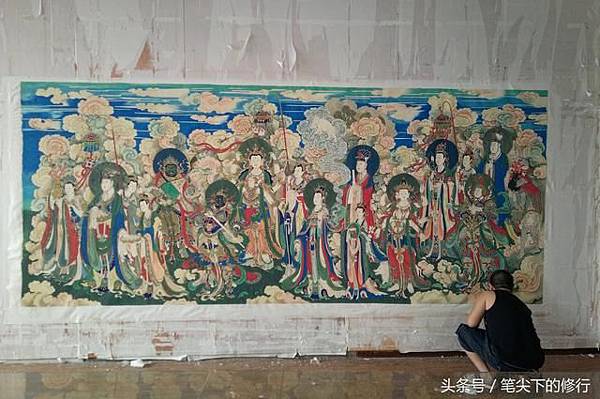 本篇分享的是:佛畫名家戰乃明先生,歷時七個月,對法海寺壁畫北壁東側進行色彩復原,通過傳統顏色和壁畫目前顏色的對比做色彩分析,儘量再現壁畫剛完成的效果。整幅作品高2米寬4.75米,十分震撼。
