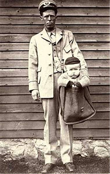 你能想像嗎?一位郵遞員單肩挎著一個大帆布袋,不是用來裝信件和物品,而是一個孩子!一個衣服上會被打上郵戳的孩子!