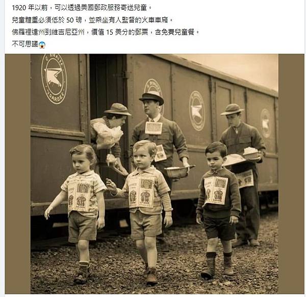 (2) 美股老司機.eth - 有趣的歴史 1920 年以前,可以透過美國郵政服務寄送兒童。 兒童體重必須低於 50… | Facebook