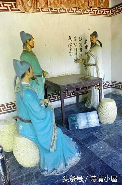 黃昏,一個端庄的姑娘帶著丫鬟走過來。她是遊園撫琴後打道回府路過這裏的。透過窗戶看見墨跡未幹的白壁題詩,不由停下腳步。那造詣深厚、龍飛鳳舞的書法深深吸引了她,見房中無人,便走進去觀賞。詩雲: