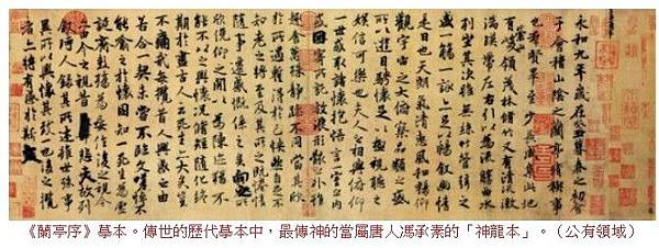 《蘭亭序》摹本。傳世的歷代摹本中,最傳神的當屬唐人馮承素的「神龍本」。(公有領域)