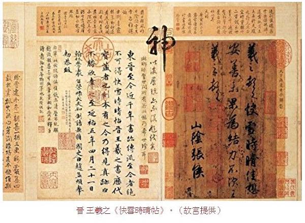 古人稱王羲之的行草如「清風出袖,明月入懷」,可謂絕妙的比喻。唐代孫過庭分析王羲之的各件作品說:「書《畫贊》則意涉瑰奇,《黃庭經》則怡懌虛無,《太師箴》有縱橫爭折。暨乎《蘭亭》興集,思逸神超。」