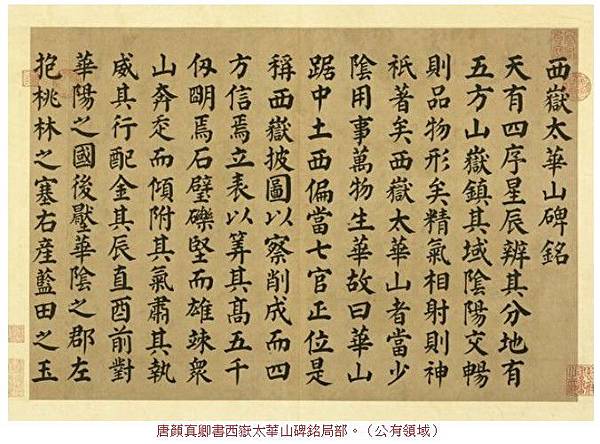 唐顏真卿書西嶽太華山碑銘局部。(公有領域)