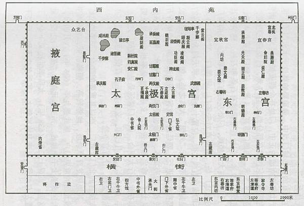 太極宮是隋代和初唐的宮城中心,位於唐長安城北部正中位置。著名的「貞觀之治」就是在這裡開創的。當年這裡有太極殿、兩儀殿、凌煙閣等主體建築。