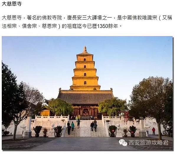 大慈恩寺,著名的佛教寺院,唐長安三大譯場之一,是中國佛教唯識宗(又稱法相宗、俱舍宗、慈恩宗)的祖庭迄今已歷1350餘年。
