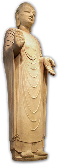 南北朝時期,中國佛教開始全面發展,其中北朝由於君王大力提倡,佛教發展尤為突出,人們紛紛爭做功德,開窟造像、興寺建塔,蔚然成風。北齊是當時鮮卑化漢人政權,在政治、文化,特別是佛教藝術方面留下輝煌篇章。此時期文化多元並立,與南朝交往、與西域聯繫和天竺佛法東傳,彼此交融碰撞,孕育出獨具特色的佛像藝術。由於統治者提倡鮮卑化,一改北魏「秀骨清像」風格,轉而迎合北方民族之審美,造像面容豐圓飽滿,裝飾簡潔單純,薄衣貼體,隱約可現佛像軀體輕微起伏變化及剛健碩美造型,此種新風格被稱為「北齊樣式」,更為隋、唐佛教藝術奠定堅實的基礎。今上海市博物館庋藏隋〈佛五尊造像碑〉,明顯保有北齊特色,可資參考。