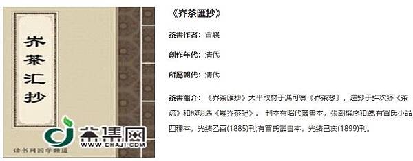 茶書簡介:《岕茶匯抄》大半取材于馮可賓《岕茶箋》,還鈔于許次紓《茶疏》和熊明遇《羅岕茶記》。 刊本有昭代叢書本,張潮撰序和跋;有冒氏小品四種本,光緒乙酉(1885)刊;有冒氏叢書本,光緒己亥(1899)刊。