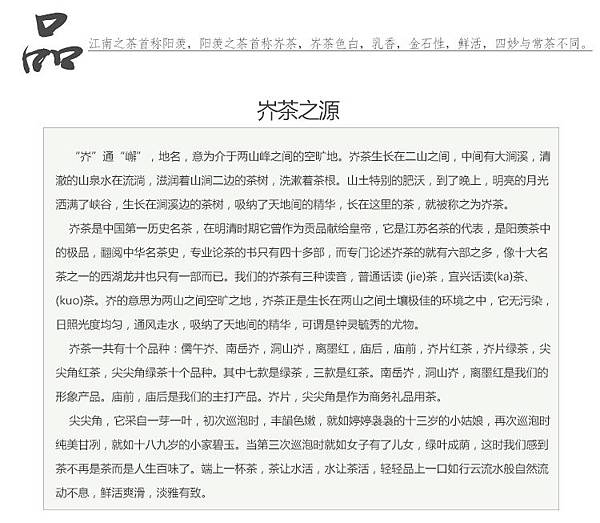 入口醇和口感很熟識、象白茶? 微微的甜像是黃茶,回甘濃郁是綠茶的滋味,輕微的澀如綿裡針。 生津回味中百感交集,是品感的迷失,還是在歷史與現實中跳躍。 從唐代到現代、品種、工藝、氣候、生態都已變化。 品飲方式,對茶的追求也發生變化,傳承了唐代的陽羨名茶。
