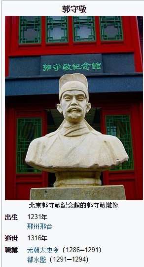 郭守敬(1231年-1316年),字若思,邢台人,中國元朝的天文學家、數學家和水利學家。