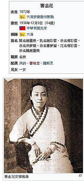 賽金花(1872年-1936年),清朝著名交際花,曾嫁予多名著名政治人物。