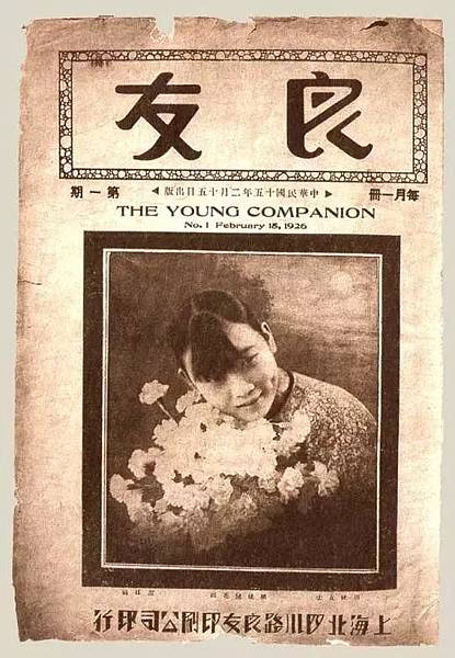 《良友》第一期的封面上印有一幅套色照像,畫面中的少女手捧鮮花、笑靨迎人,這就是日後紅極一時的電影明星胡蝶女士。