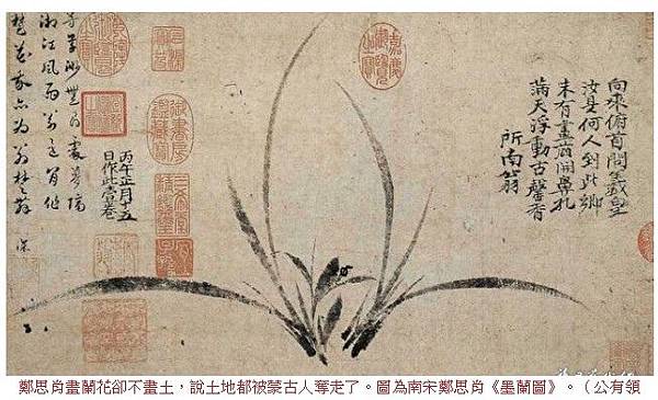 鄭思肖畫蘭花卻不畫土,說土地都被蒙古人奪走了。圖為南宋鄭思肖《墨蘭圖》。(公有領域)