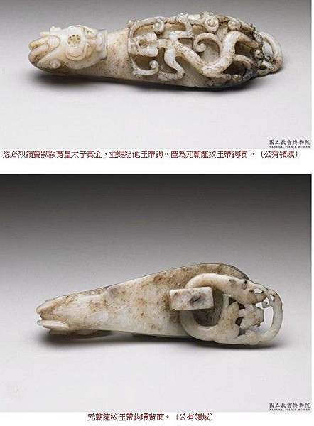 忽必烈請竇默教育皇太子真金,並賜給他玉帶鉤。圖為元朝龍紋玉帶鉤環 。(公有領域)