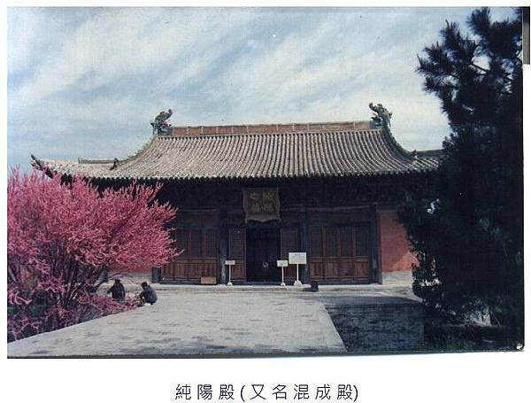 純陽殿又稱呂祖殿,殿面寬五間、進深三間八架椽,單簷九脊頂,殿的內部僅用四根金柱支承,大樑跨越四間,從而使大殿的空間顯得異常開闊。殿內四壁和扇面牆壁滿繪著描繪呂洞賓生平事蹟的“純陽帝君仙遊顯化之圖”共計52幅,每幅畫自成一體,相互之間用山水、雲霧、樹石等自然景色相隔連,畫面上的亭臺樓閣、酒肆茶舍、園林私塾,層次分明,錯落有致,貴官、學士、商賈、平民、農夫、乞兒等各類人物造型神態動人,表情各異,這些畫像是研究元代中國人民生活情況的珍貴資料。殿的神龕背面,還繪有呂純陽向鐘離問道的壁畫,畫面開闊,景色秀麗,用筆簡練,技法精湛,是典型的元代繪畫風格。純陽殿壁畫是元代至正十八年(1358年)朱好古的門人張遵禮等人繪製的。