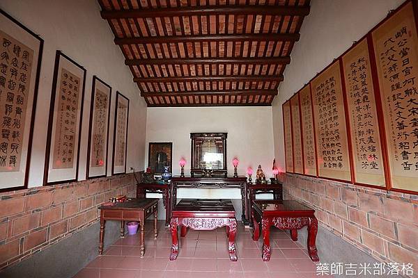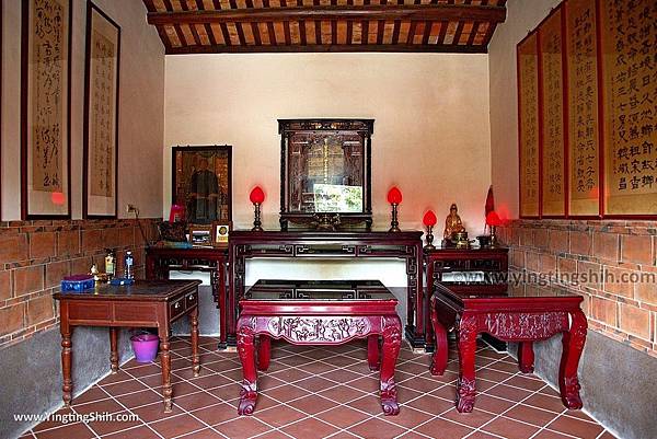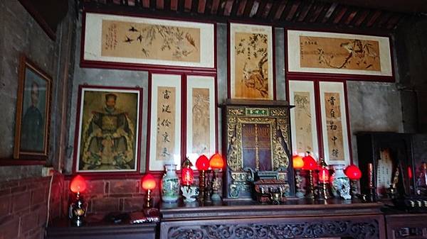 以房屋格局來看,江夏堂是屬於一座雙護龍的三合院,廳堂供奉祖先牌位,尤其祭天神龕非常獨特
