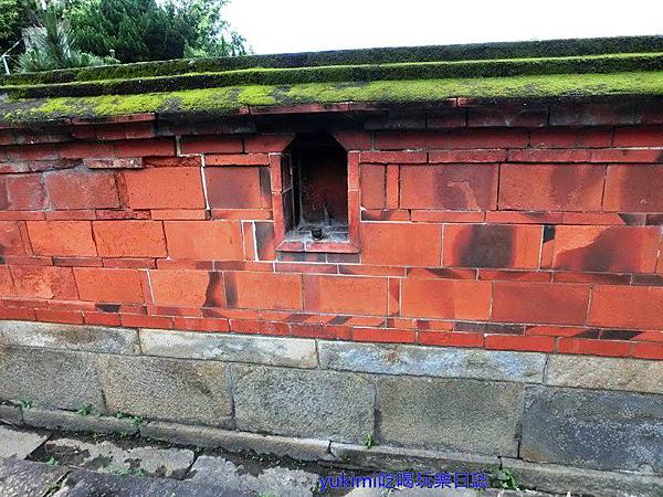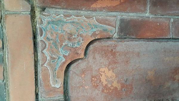門前兩側護龍上的磚砌成凸出的水平線條~鳥踏