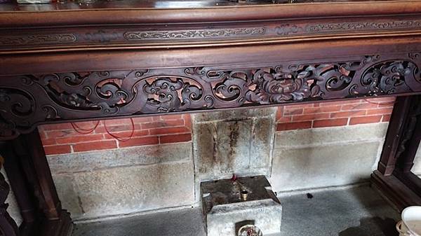 圖17 神桌个軟團木雕、祖先神龕下个龍神神位。(2023.08.21攝)