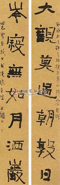 款識大觀莫過朝敦曰,岑寂無如月灑岩。取《好太王碑》之拙樸而略加跌宕成此。時在己卯立秋日於洗風亭畔,王鏞。印文王鏞信印、凸齋、戊子生