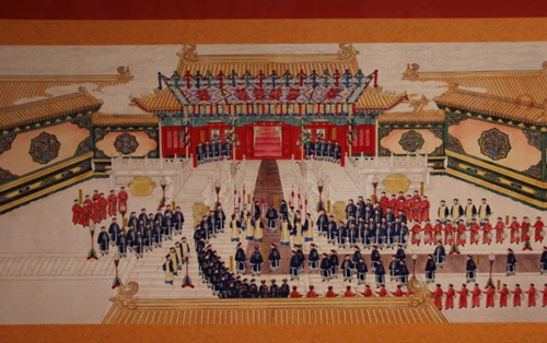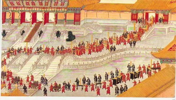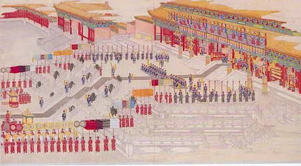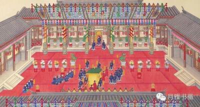 光緒皇帝娶親的整個過程分為婚前禮、成婚禮和婚後禮三個階段,《大婚典禮全圖冊》描繪的場景包括納采禮、大征禮、冊立禮、奉迎禮、合卺禮、慶賀禮和賜宴。
