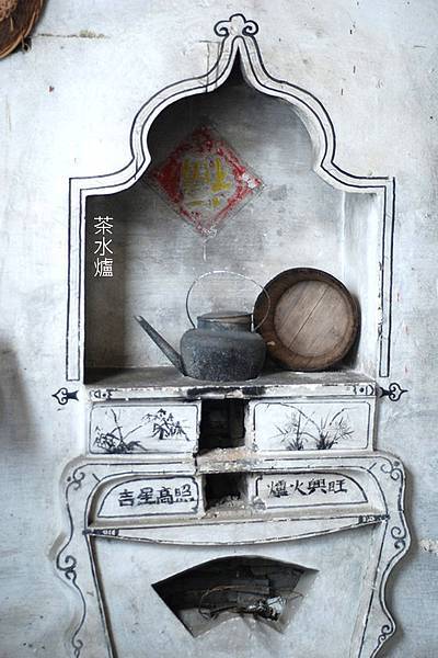 茶水銅壺,下面類似火箭爐,銅壺是平底的,配火箭爐剛剛好,煙囪在牆壁裡,宋朝以後中式的爐灶,大多依據人體工學,像這個是站著使用,如日本灶則習慣蹲著用,一方面跟古人身高有點關係,另一方面日本人沿襲唐風不坐椅子,坐褟褟米上,所以日本灶也會比較低。
